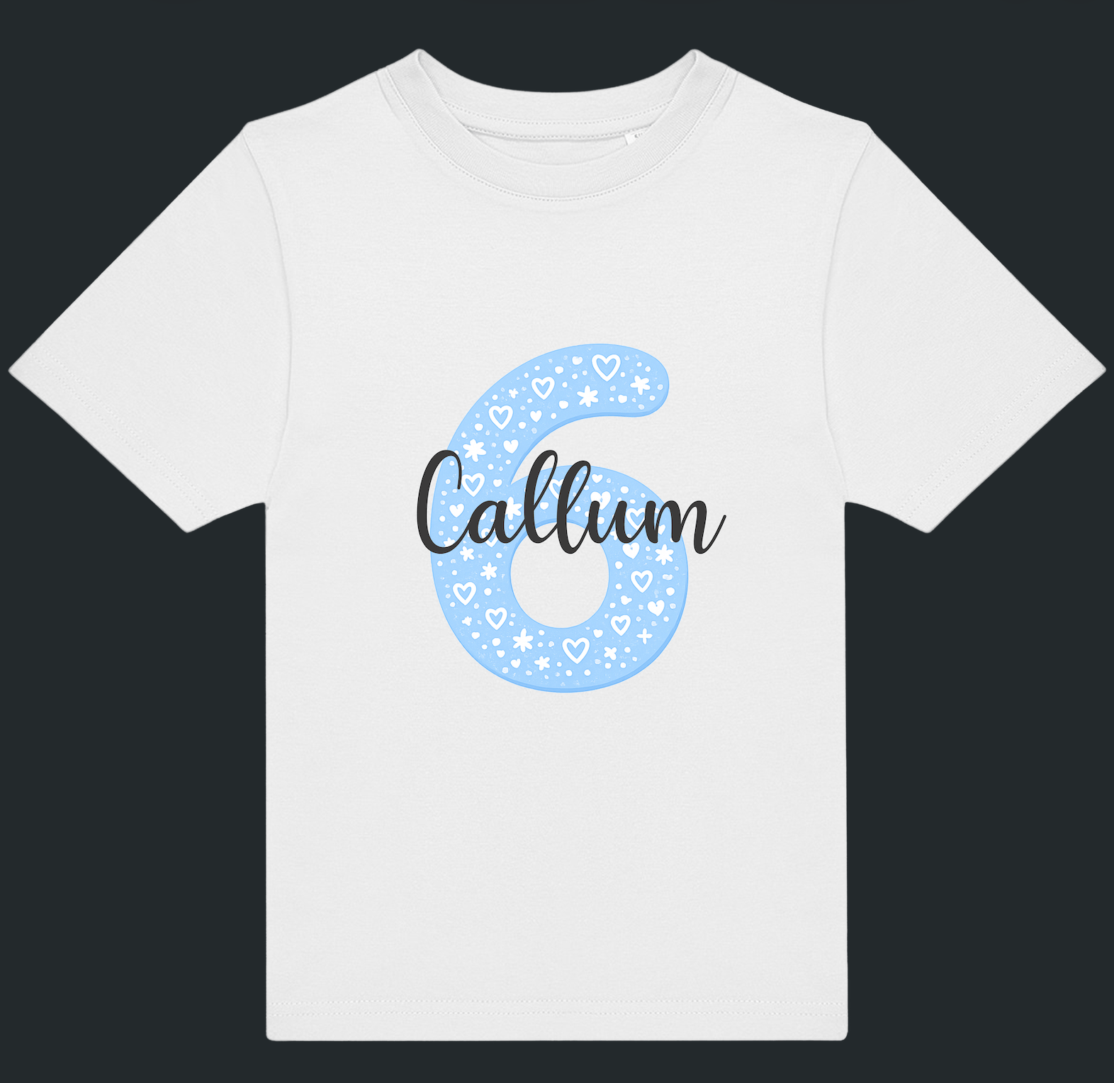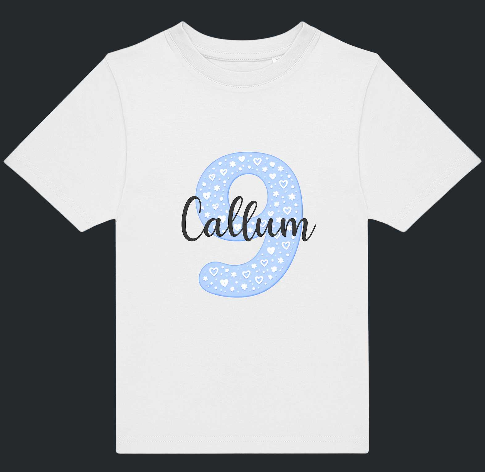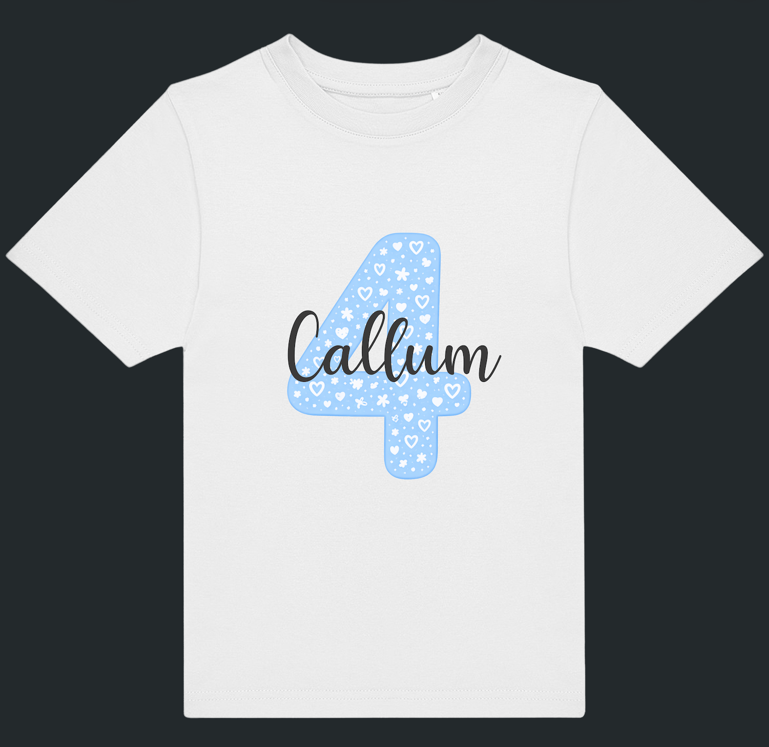 Celebrate their special age in style with a personalised blue number and name kids t-shirt — perfect for birthdays, milestone moments, and memorable photos.